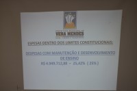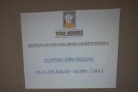 Em seguida, o contador municipal, Edvaldo Fontes, exibiu os relatórios financeiros, destacando as receitas e despesas do município, que se mantêm dentro dos limites constitucionais.