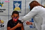 O município de Vera Mendes segue avançando na campanha de imunização contra a Covid-19, e na manhã desta quarta-feira, dia 26 de janeiro, a Prefeitura Municipal por meio da Secretaria de Saúde, deu início a campanha de vacinação de crianças com faixa etária entre 5 e 11 anos. A campanha de imunização, que foi realizada na UBS Carlos Hermógenes de Oliveira, é baseada nas orientações oficiais do Ministério da Saúde que incluíram as crianças no Plano Vacinal Brasileiro. Nesta primeira etapa, a vacina que está sendo aplicada é a CoronaVac. Na cidade, a primeira criança vacinada foi o Renan Silva, de 8 anos, que reside na zona rural do município na localidade Bom Lugar, e foi até o local, na sede, acompanhado da mãe, Francisca da Conceição. “Estou com um pouco de medo, mas é por um motivo bom, se livrar desse vírus e deixar de usar máscara.” Comentou Renan. Francisca, que já foi acometida pelo coronavírus, comemorou a vacina do filho. “É uma vitória, eu que já fui acometida pelo vírus, fico bastante feliz em ver todos ao meu redor já vacinados, viva a ciência, viva o sus e viva a saúde de Vera Mendes pelo belo trabalho.” Disse. De acordo com a secretária de Saúde, Andreia Sampaio, a previsão é que 250 crianças com essa faixa etária sejam vacinadas no município. “A vacinação segue por idade, de forma decrescente, conforme o recebimento de novas remessas de vacina, até que todo o público infantil seja vacinado.” Comentou. Andreia destacou ainda, que a campanha é importante e vacinar as crianças é prioridade. “A vacina tem se mostrado eficiente, pois tem evitado o agravamento da doença e reduzido o risco de morte.” disse a secretária de saúde. Para melhor receber as crianças, a equipe preparou uma logística especial com um local bem alegre e com decoração temática, e realizou também a entrega de mimos, como reconhecimento pelo gesto de bravura. Para ser atendida pela campanha de vacinação, a criança deve estar acompanhada por um dos pais ou outro responsável maior de 18 anos, com documento de identidade, sendo necessário apresentar três documentos: certidão de nascimento ou documento de identificação original com foto; cartão nacional do SUS ou CPF, e a caderneta de vacinação. A Secretaria de Saúde orienta ainda que para receber a vacina, a criança não pode ter recebido nenhuma outra vacina do calendário infantil nos 15 dias anteriores e que não esteja com qualquer doença na fase aguda (gripada, por exemplo). Fotos;