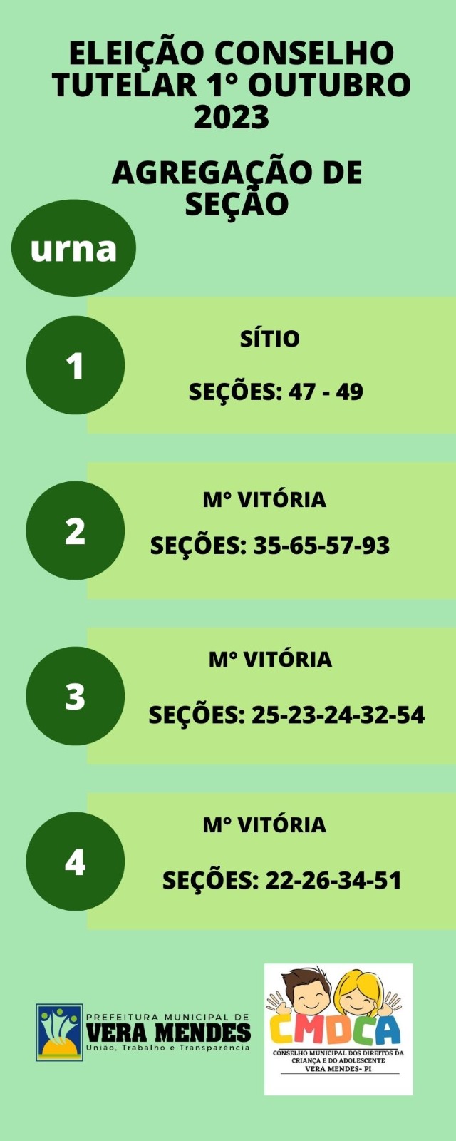 A Prefeitura de Vera Mendes, em parceria com a Secretaria de Assistência Social e o Conselho Municipal dos Direitos da Criança e do Adolescente (CMDCA), anunciou oficialmente os locais de votação para a eleição do Conselho Tutelar.
