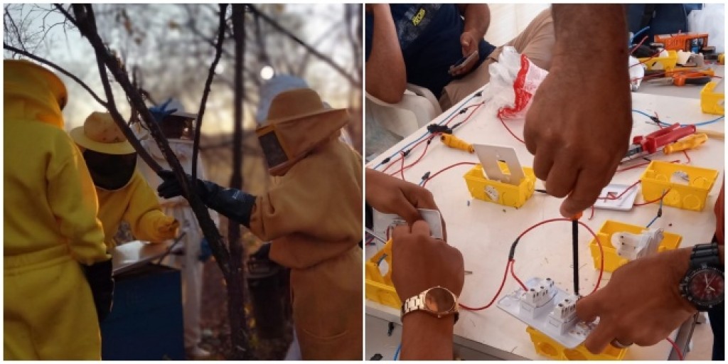 A Prefeitura de Vera Mendes promoveu mais uma etapa de cursos profissionalizantes no município, desta vez, oferecendo Capacitações de Produção de Abelhas Rainhas e Eletricista Rural. Essa iniciativa foi resultado de uma parceria entre a Prefeitura Municipal, por meio da Secretaria de Agricultura, Recursos Hídricos e Meio Ambiente, e o Serviço Nacional de Aprendizagem Rural (SENAR). Os cursos foram divididos em duas partes: a parte teórica ocorreu na sede da Prefeitura, onde os participantes tiveram a oportunidade de adquirir conhecimentos fundamentais sobre os temas abordados. Os instrutores responsáveis por ministrar o conteúdo teórico foram Anderson de Sousa e Fabio Adriano Santos, ambos do Serviço Nacional de Aprendizagem Rural. Após a etapa teórica, os cursos avançaram para a parte prática, que ocorreu em um apiário e nas propriedades dos próprios alunos. Essa abordagem prática permitiu que os participantes aplicassem os conhecimentos adquiridos em um ambiente real, desenvolvendo habilidades específicas para a produção de abelhas rainhas e para o trabalho como eletricistas rurais. Os instrutores do SENAR acompanharam os alunos durante essa fase prática, orientando-os e auxiliando-os no desenvolvimento das atividades. Essa abordagem integrada entre teoria e prática foi fundamental para os participantes poderem consolidar o aprendizado e se prepararem de maneira efetiva para o mercado de trabalho. A entrega dos certificados aos participantes dos cursos será realizada durante a Feira do Empreendedorismo da Agricultura, um evento que acontece durante a realização do IX Festival Junino. Essa é uma oportunidade para celebrar o aprendizado dos alunos e reconhecer o esforço e dedicação deles ao longo do curso. Geania Sousa, secretária de Agricultura, Recursos Hídricos e Meio Ambiente, destacou que ao proporcionar cursos teóricos e práticos, a gestão contribui para a formação de profissionais qualificados, incentivando o empreendedorismo na área rural e fortalecendo o setor agrícola do município. “É com grande satisfação que estamos promovendo mais uma etapa dos cursos profissionalizantes com apoio do nosso prefeito Dr. Carlim, em parceria com o SENAR. Através dessas capacitações, estamos investindo no crescimento e no fortalecimento do setor agrícola de Vera Mendes. Estou confiante de que esses cursos irão proporcionar conhecimentos práticos essenciais para o desenvolvimento dos participantes e impulsionar novas oportunidades na agricultura. Juntos, estamos construindo um futuro promissor para nossa comunidade rural.” Disse. Mais fotos;