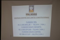 Em seguida, o contador municipal, Edvaldo Fontes, exibiu os relatórios financeiros, destacando as receitas e despesas do município, que se mantêm dentro dos limites constitucionais.